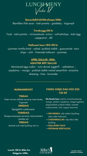 Öppet för lunchservering måndag - fredag 11.30-14.00